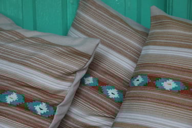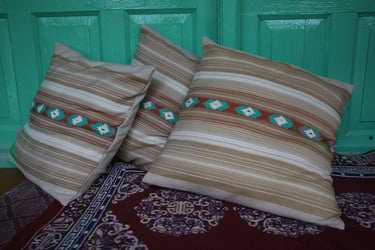 כרית VAJRA בעלת דוגמת היהלום, שואבת השראה מדוגמת האריגה המסורתית הצפון הודית KULLVI.