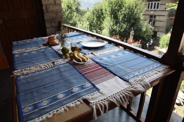 דוגמאת האריג המורכבת משלבת בין אריגת יהלומים לבין דוגמאת CHSHAM שהיא עיטור אריגה גיאומטרי מסורתי הימאלאי. הפלייסמנט מכיל גם את עיטור הKATU.