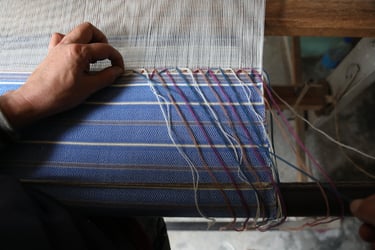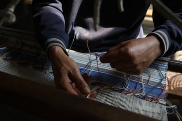 דוגמאת האריג המורכבת משלבת בין אריגת יהלומים לבין דוגמאת KINGRI שהיא עיטור אריגה גיאומטרי מסורתי הימאלאי.
